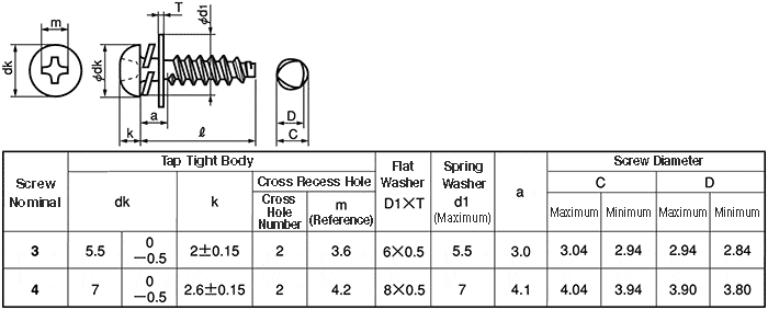 สกรู Taptite หัวกระทะชนิด B P=4 (SW+แหวนอีแปะขนาดเล็ก JIS)