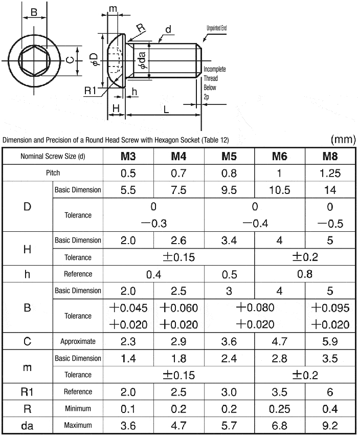 [การออกแบบขนาดเกลียว (M)] 3 4 5 6 8 10 12 16