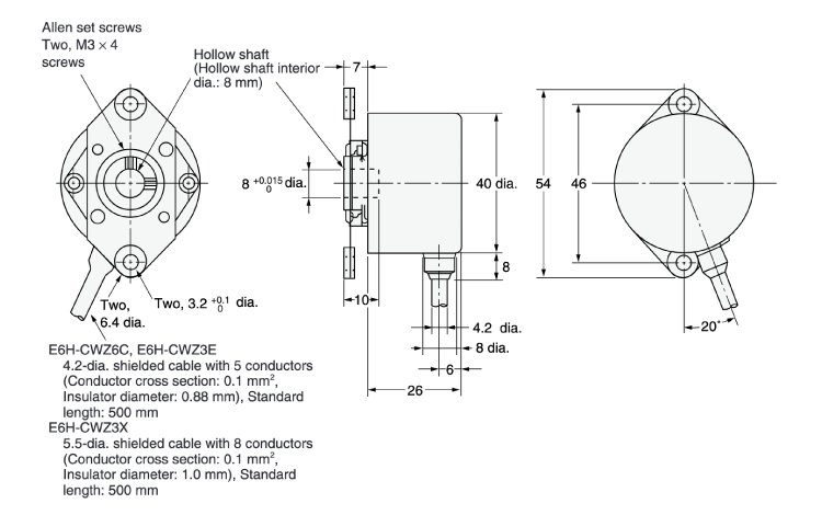 Drawing ระบุขนาดของ OMRON เอ็นโค้ดเดอร์แบบแกนหมุน