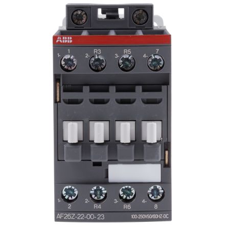 ชุดคอนแทคเตอร์ ABB 4 ขั้ว ที่ใช้สำหรับควบคุมวงจรกำลังไฟฟ้าสูงสุดถึง 690 V ac และ 440 V dc.