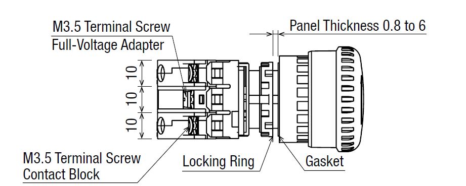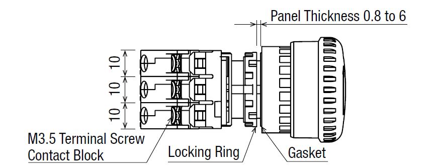 ดรออิ้งบอกขนาด ของ สวิตช์หยุดฉุกเฉิน/ เซฟตี้สวิตช์ IDEC