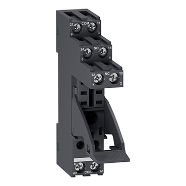 ช่องเสียบรีเลย์ ตั้งเวลา Harmony RGZ นี้มีขั้วต่อ หน้าสัมผัส แยกกัน ช่วยให้ติดตั้ง รีเลย์ แบบ ปลั๊กอิน ได้อย่างรวดเร็วและง่ายดายโดยไม่ต้องใช้ เครื่องมือ รองรับการใช้งาน กับ รีเลย์ C/O DPDT RXG ทั้ง 2 ตัวได้ การยึด รีเลย์ แบบง่ายโดยใช้ แคลมป์ยึด ช่วยให้เปลี่ยน รีเลย์ ได้รวดเร็วและลดเวลาหยุดทำงาน เครื่องจักร
