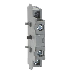 การกำหนดหมายเลขหน้าสัมผัสตามมาตรฐาน EN 50013. การติดตั้งแบบ Snap-on ที่ด้านข้างของสวิตช์ Ith = 16 A, พื้นที่หน้าตัดสายเคเบิลสูงสุด 2 x 2.5 mm². ประเภทเบรกเร็ว OA1G10. หน้าสัมผัสเสริมชนิดตัดก่อนหมายความว่าในสวิตช์ หน้าสัมผัสเสริม NO จะตัดก่อนที่หน้าสัมผัสหลักจะเปิด