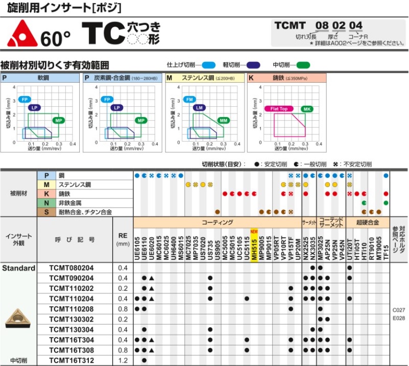 เม็ดมีด มีด Class M (ไม่มี เบรกเกอร์ ขาออก) TCMT ○○○