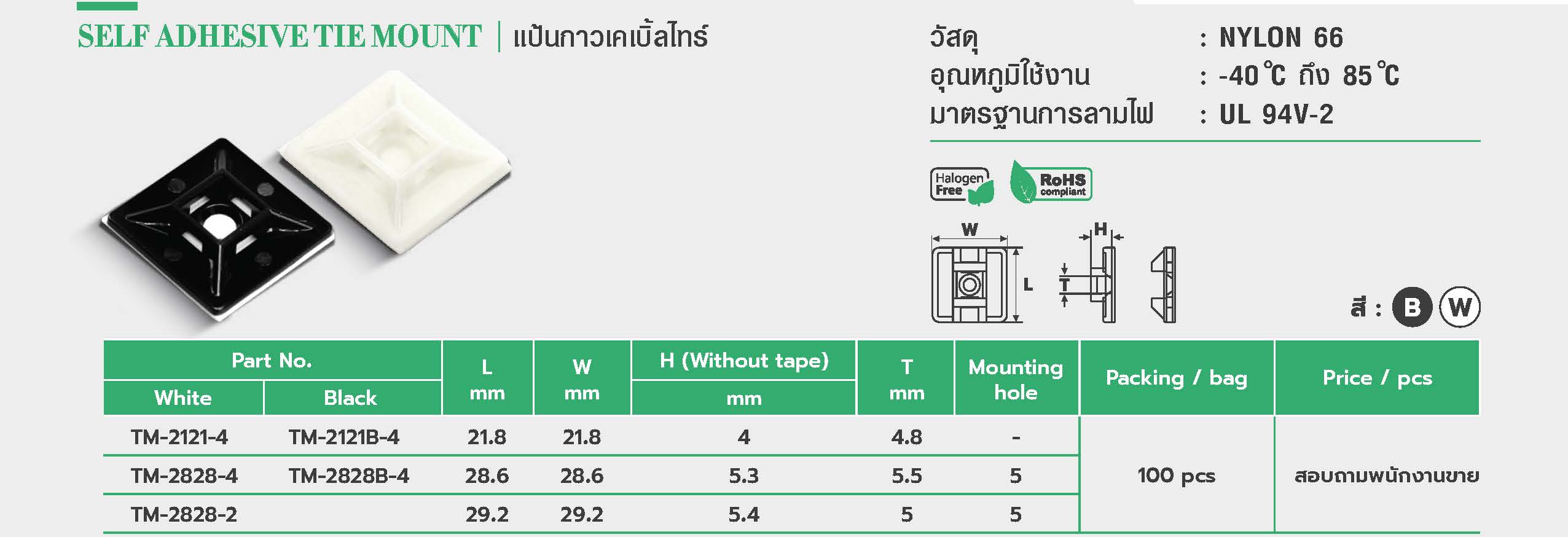 · วัสดุ: ไนล่อน 66, 94 V-2 ที่ได้รับการรับรองจาก UL (ด้านหลังมี เทปกาว)