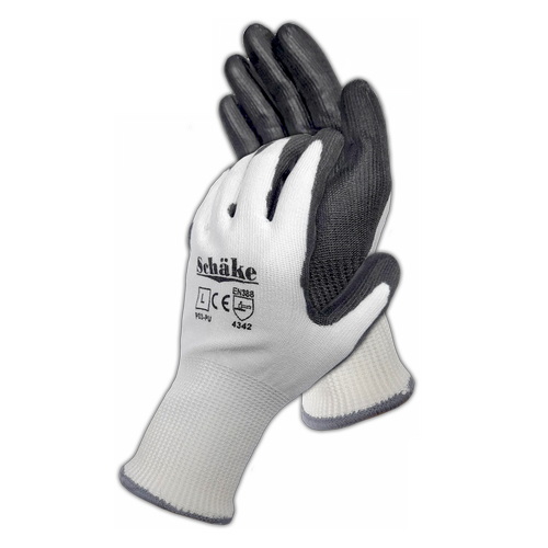 - ถุงมือกันบาด LV3 คือ ถุงมือไนล่อน สีขาว การเคลือบผิว PU สีดำ